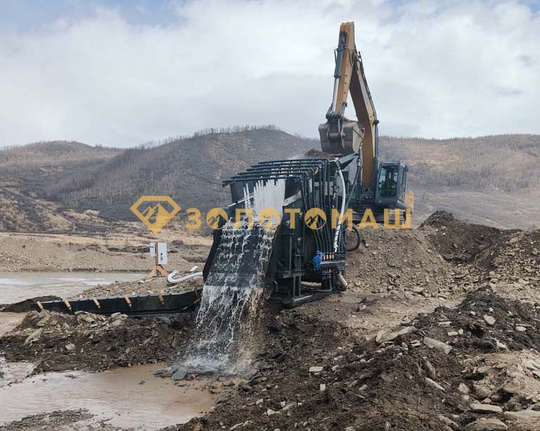 В качестве узла классификации выбрали вибрационный грохот ГИТ-42 как надёжное решение под высокую загрузку и сложные условия эксплуатации.Скомпоновали комплекс вокруг связки «подача → грохочение/классификация → промывка/улавливание», чтобы снять типовые риски россыпной добычи: забивание, неравномерная подача, потери по крупности.